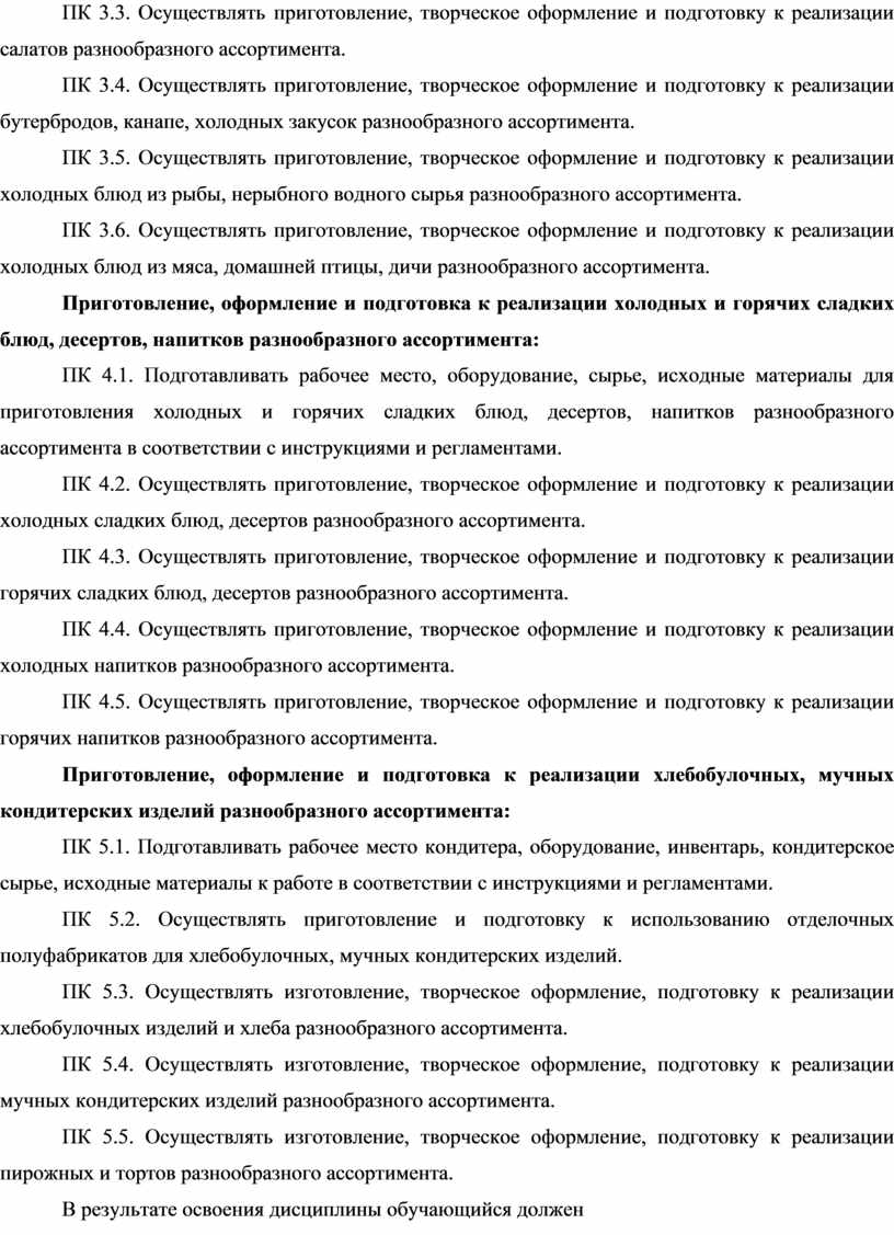 ПК 5.4. Осуществлять изготовление, творческое оформление, подготовку к реализации мучных кондитерских изделий разнообразного ассортимента.