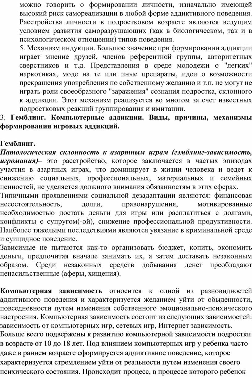 3. Гемблинг. Компьютерные аддикции. Виды, причины, механизмы формирования игровых аддикций.