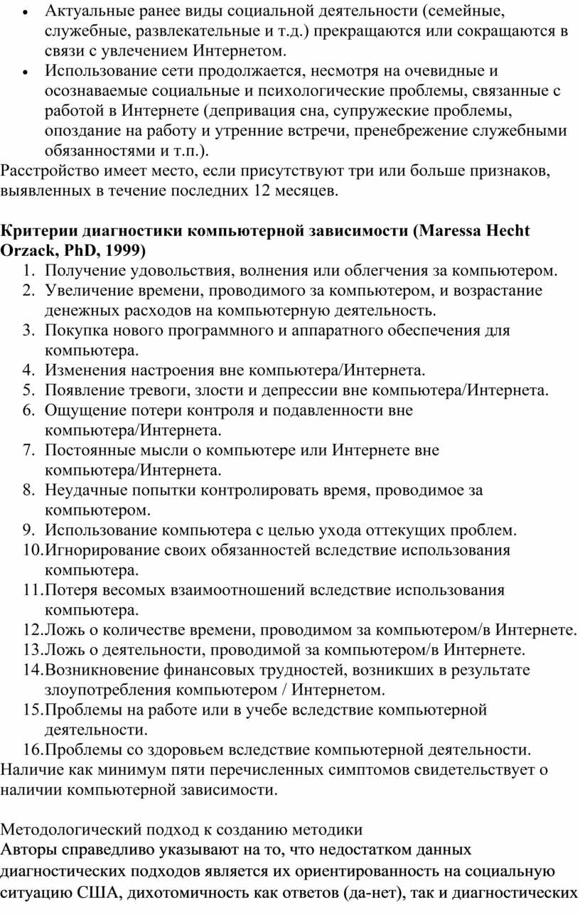 Критерии диагностики компьютерной зависимости (Maressa Hecht Orzack, PhD, 1999)
