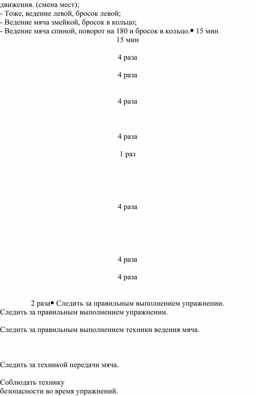 2. Основная часть Организует работу в парах: - Ведение мяча на месте по свистку бросок мяча; - Ведение мяча на встречу друг к друга на середине площадке передача мяча; - Передача мяча двумя руками от груди (с отскоком о пол), двигаясь приставным шагом параллельно друг другу; - тоже, но двигаясь лицом вперед; - В центре круга один игрок, делает передачи (от груди, от плеча), движущимся игрокам по часовой стрелки при этом сам двигается в противоположную сторону; - Игрок выполняет ведение мяча справа с броском по кольцу правой рукой, партнер слева выполняет съем и с ведением идет в точку начала движения. (смена мест); - Тоже, ведение левой, бросок левой; - Ведение мяча змейкой, бросок в кольцо; - Ведение мяча спиной, поворот на 180 и бросок в кольцо. |