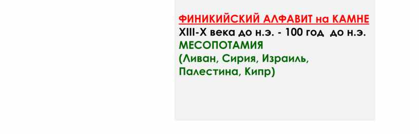 ФИНИКИЙСКИЙ АЛФАВИТ на КАМНЕ XIII-X века до н.э. - 100 год до н.э. МЕСОПОТАМИЯ (Ливан, Сирия, Израиль, Палестина, Кипр)