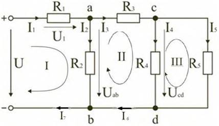 1. Написать формулы по первому закону Кирхгофа для узлов а I1-I2-I3=0