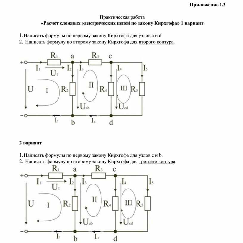 «Расчет сложных электрических цепей по закону Кирхгофа» 1 вариант
