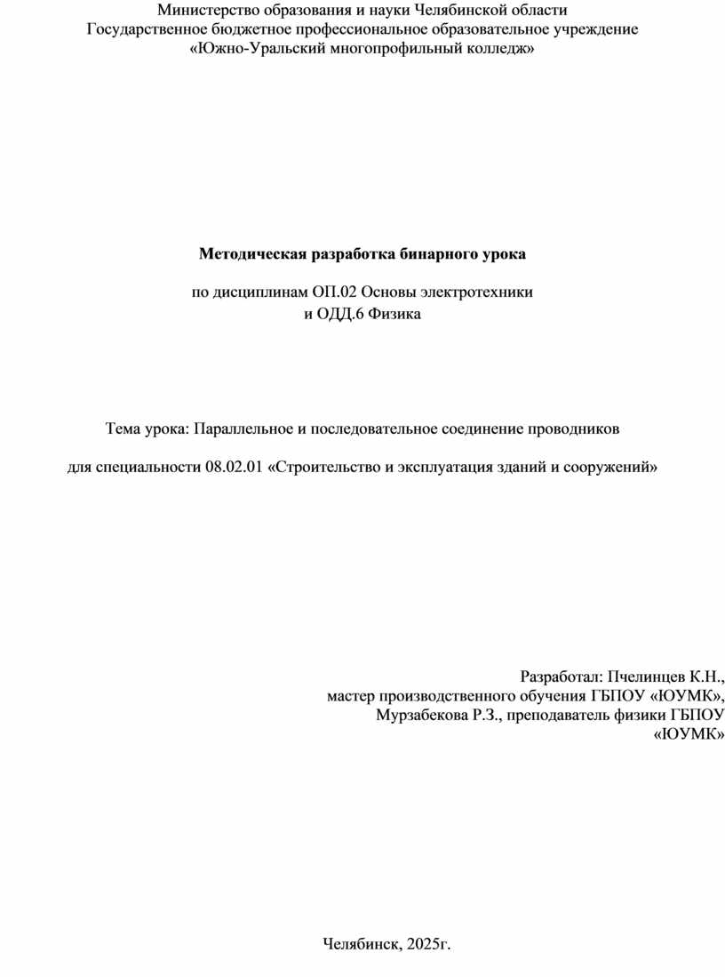 по общепрофессиональной дисциплине «ОП.02 Основы электротехники» и общеобразовательной дисциплине ОДД.6 Физика