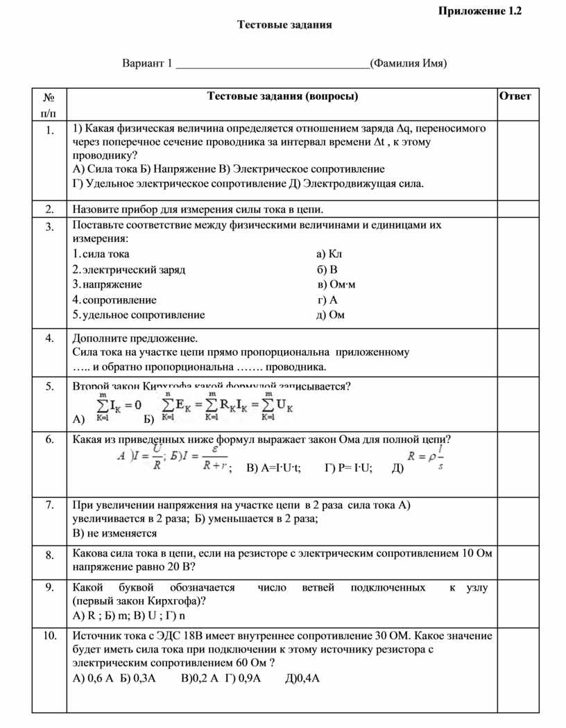 1) Какая физическая величина определяется отношением заряда ∆q, переносимого через поперечное сечение проводника за интервал времени ∆t , к этому проводнику? А) Сила тока Б) Напряжение В) Электрическое сопротивление Г) Удельное электрическое сопротивление Д) Электродвижущая сила. |