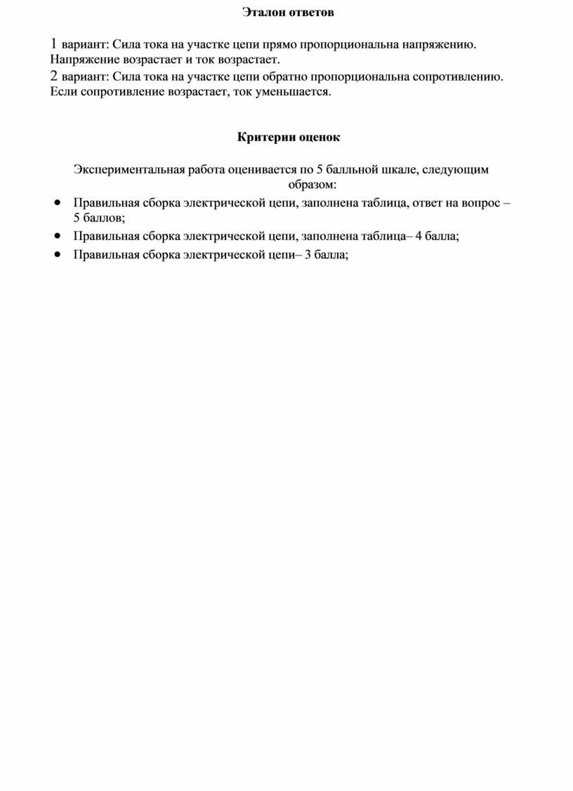 · Правильная сборка электрической цепи, заполнена таблица, ответ на вопрос – 5 баллов;