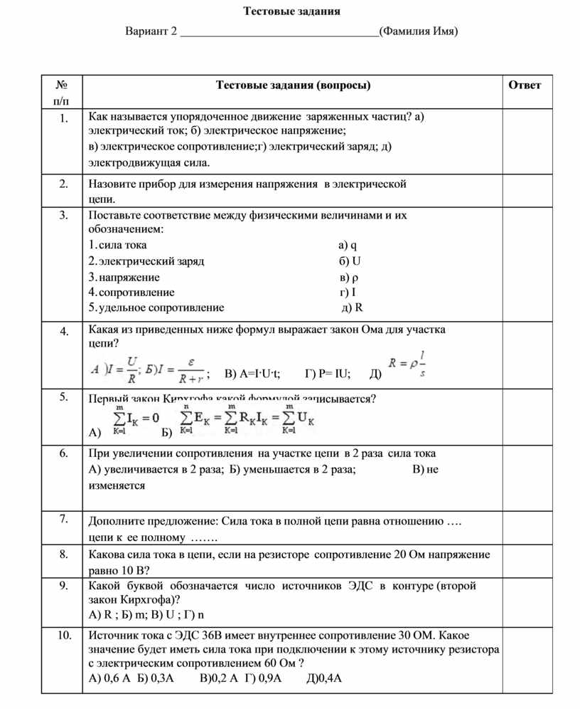 Как называется упорядоченное движение заряженных частиц? а) электрический ток; б) электрическое напряжение; в) электрическое сопротивление;г) электрический заряд; д) электродвижущая сила. |