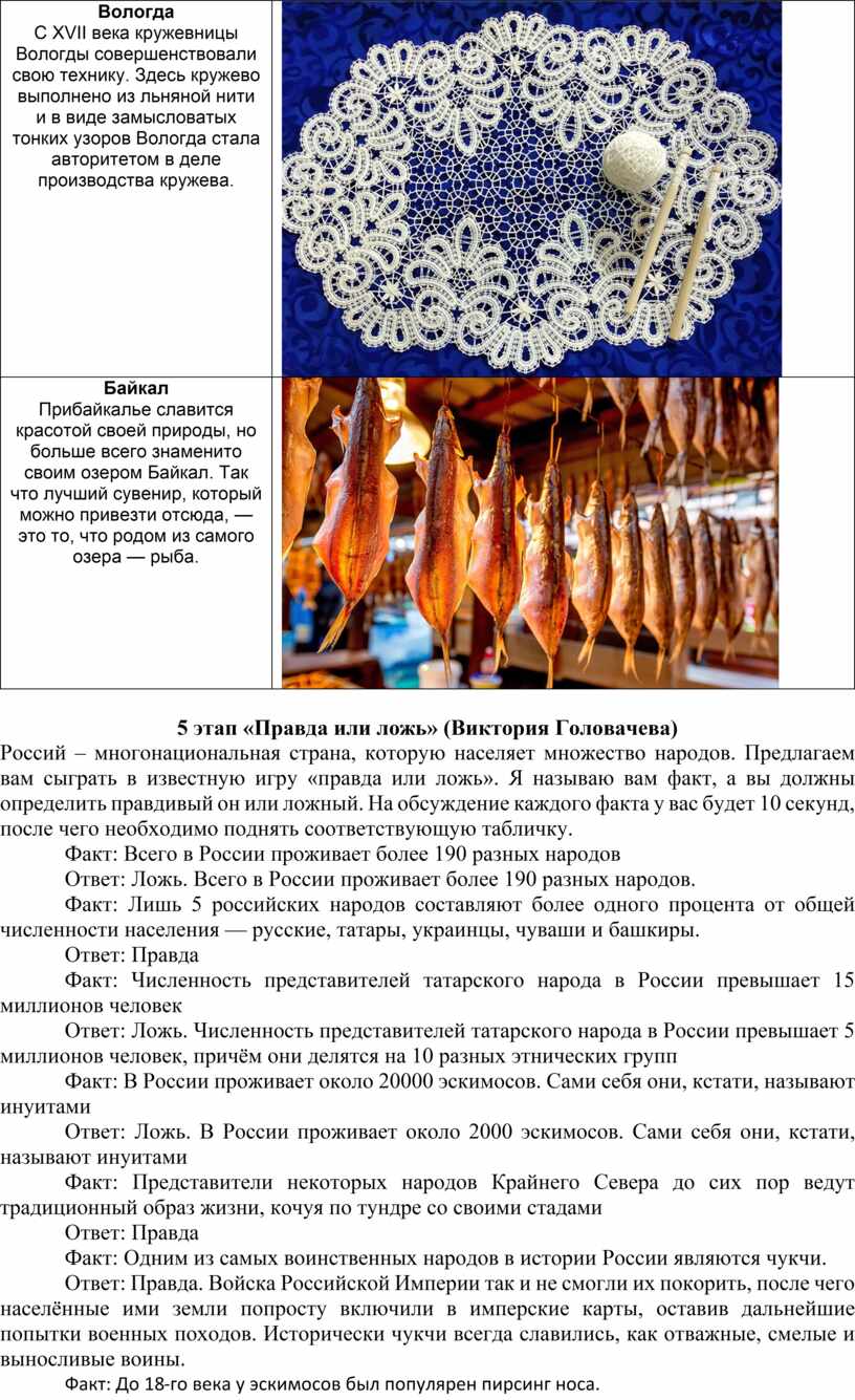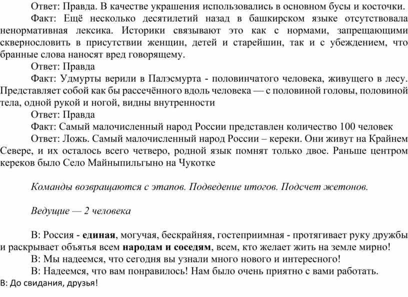 Россий – многонациональная страна, которую населяет множество народов. Предлагаем вам сыграть в известную игру «правда или ложь». Я называю вам факт, а вы должны определить правдивый он или ложный. На обсуждение каждого факта у вас будет 10 секунд, после чего необходимо поднять соответствующую табличку.
