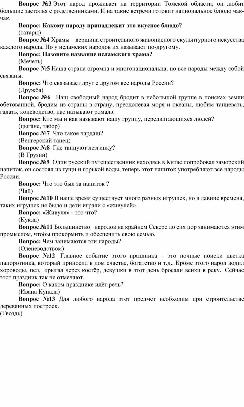 Вопрос №5 Наша страна огромна и многонациональна, но все народы между собой связаны.