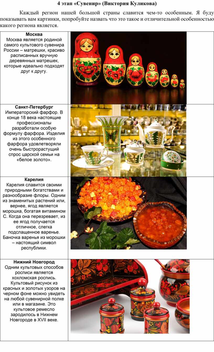 Каждый регион нашей большой страны славится чем-то особенным. Я буду показывать вам картинки, попробуйте назвать что это такое и отличительной особенностью какого региона является.