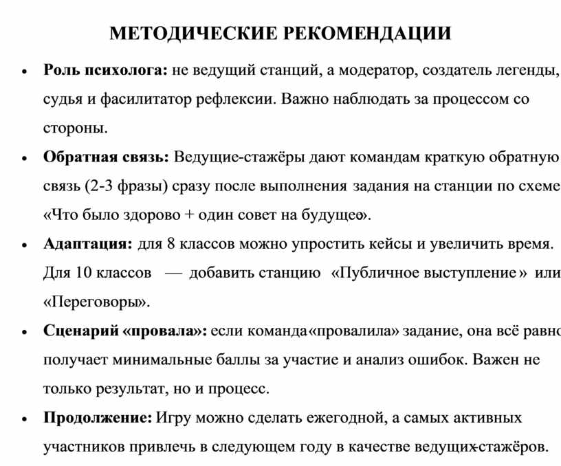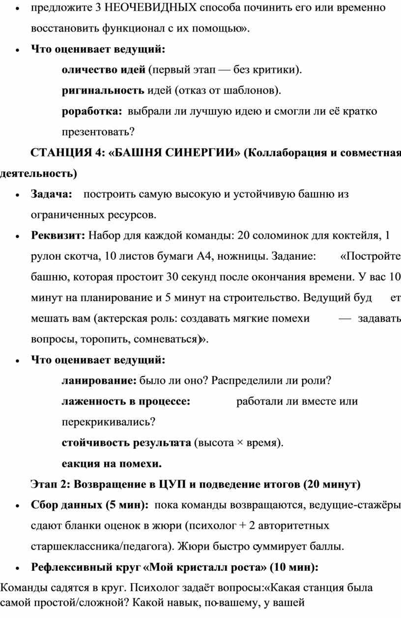 где объясняются цели станции, чёткий сценарий, правила оценки и принципы