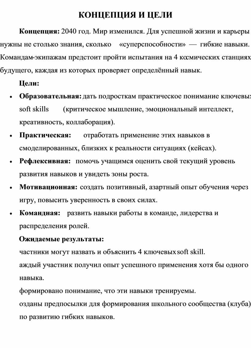 КОНЦЕПЦИЯ И ЦЕЛИ