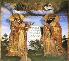 Братья стали монахами, получив имена Кирилл и Мефодий в монашестве. Византийский император отправил братьев в Моравию проповедовать христианское учение на родном славянском языке. Братья начали свою деятельность с создания славянской азбуки, чтобы перевести на славянский язык греческие богослужебные книги.