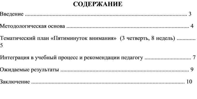 Тематический план «Пятиминуток внимания» (3 четверть, 8 недель) ............. 5