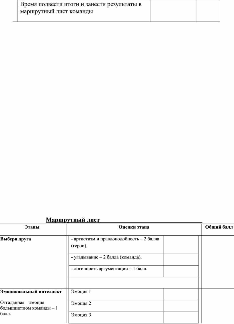 Время подвести итоги и занести результаты в маршрутный лист команды |
