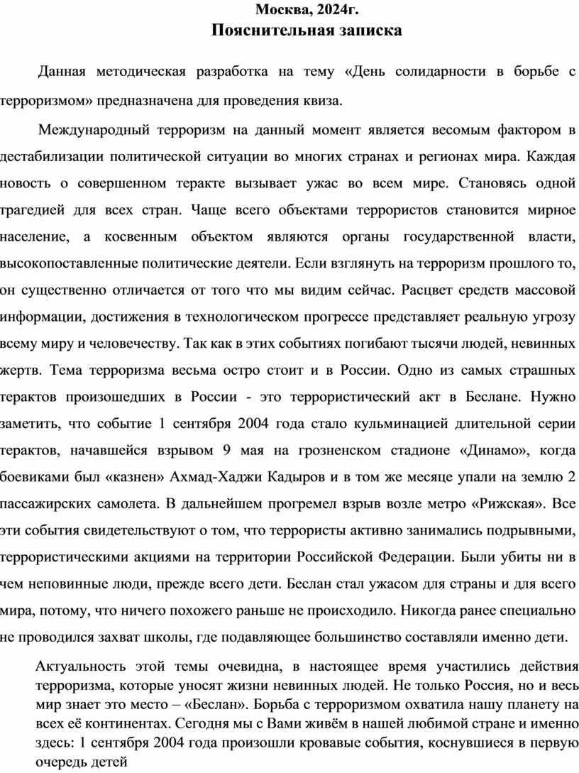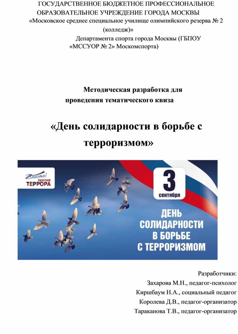 Данная методическая разработка на тему «День солидарности в борьбе с терроризмом» предназначена для проведения квиза.