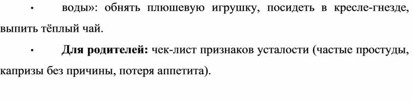 • Для родителей: чек-лист признаков усталости (частые простуды, капризы без причины, потеря аппетита).