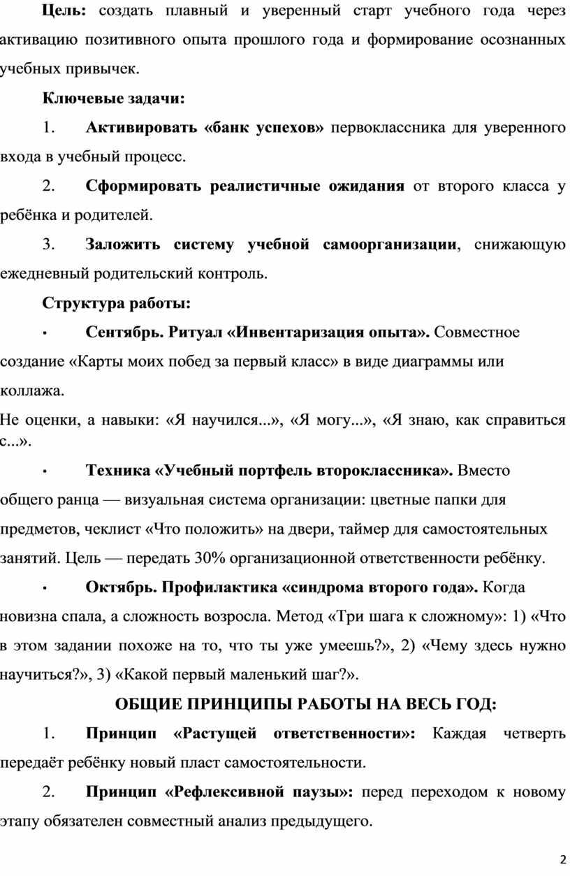 2. Сформировать реалистичные ожидания от второго класса у ребёнка и родителей.