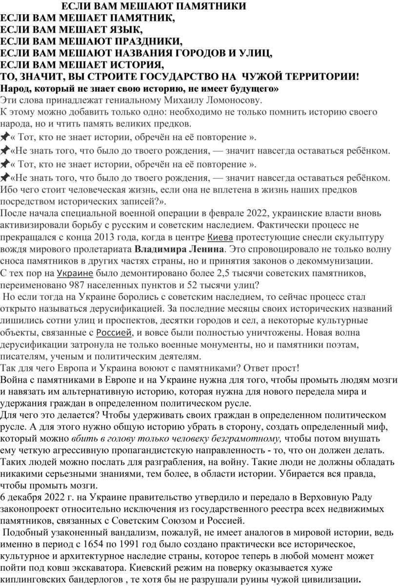 ЕСЛИ ВАМ МЕШАЮТ ПАМЯТНИКИ