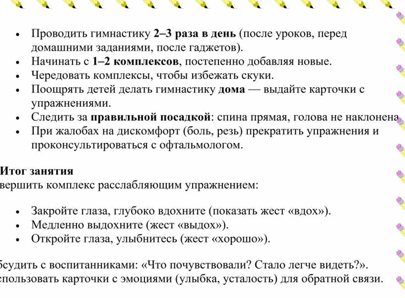 5. Рекомендации по проведению гимнастики для глаз