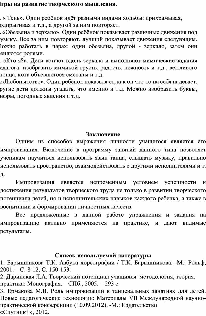 3. Ермакова М.В. Роль импровизации в танцевальных занятиях для детей. Новые педагогические технологии: Материалы VII Международной научно-практической конференции (10.09.2012). -М.: Издательство