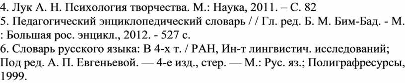 4. Лук А. Н. Психология творчества. М.: Наука, 2011. – С. 82