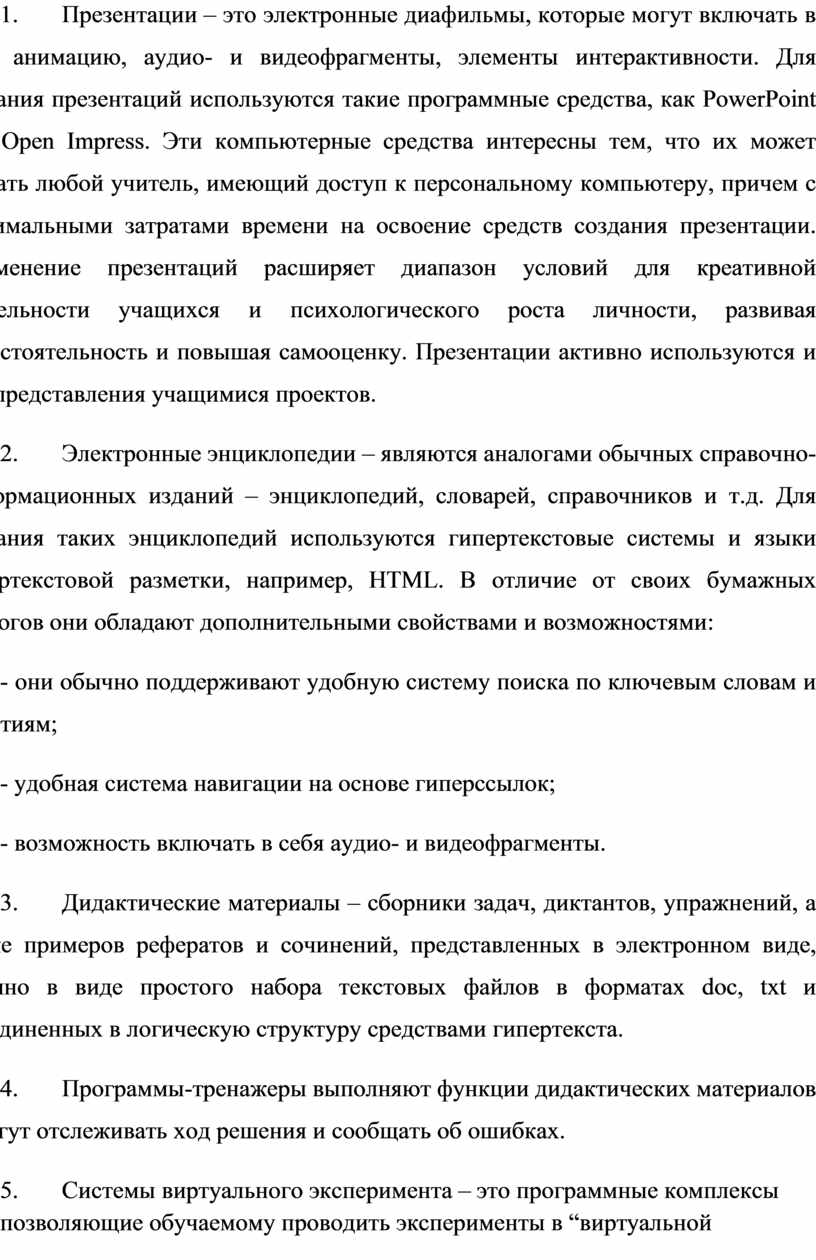 3. Дидактические материалы – сборники задач, диктантов, упражнений, а также примеров рефератов и сочинений, представленных в электронном виде, обычно в виде простого набора текстовых файлов в форматах doc, txt и объединенных в логическую структуру средствами гипертекста.
