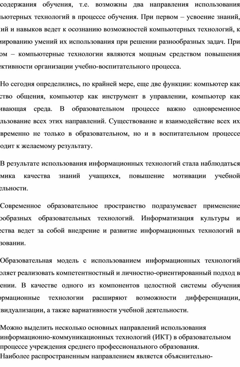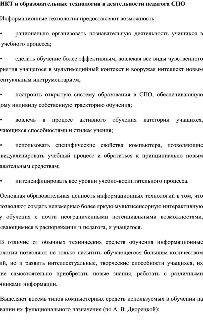 ИКТ и образовательные технологии в деятельности педагога СПО