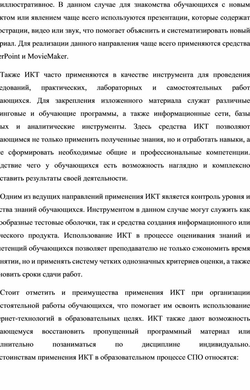 К достоинствам применения ИКТ в образовательном процессе СПО относятся: