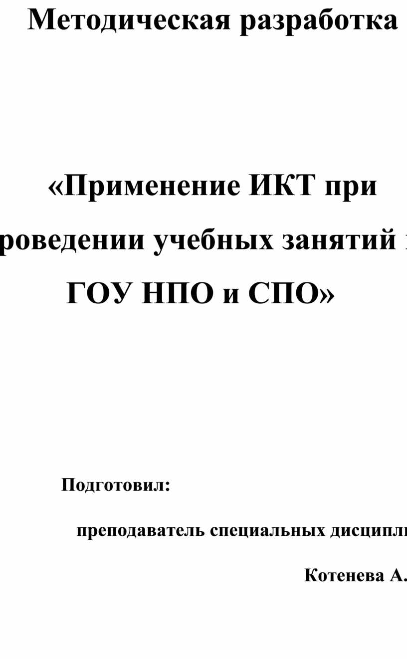 «Применение ИКТ при проведении учебных занятий в ГОУ НПО и СПО»