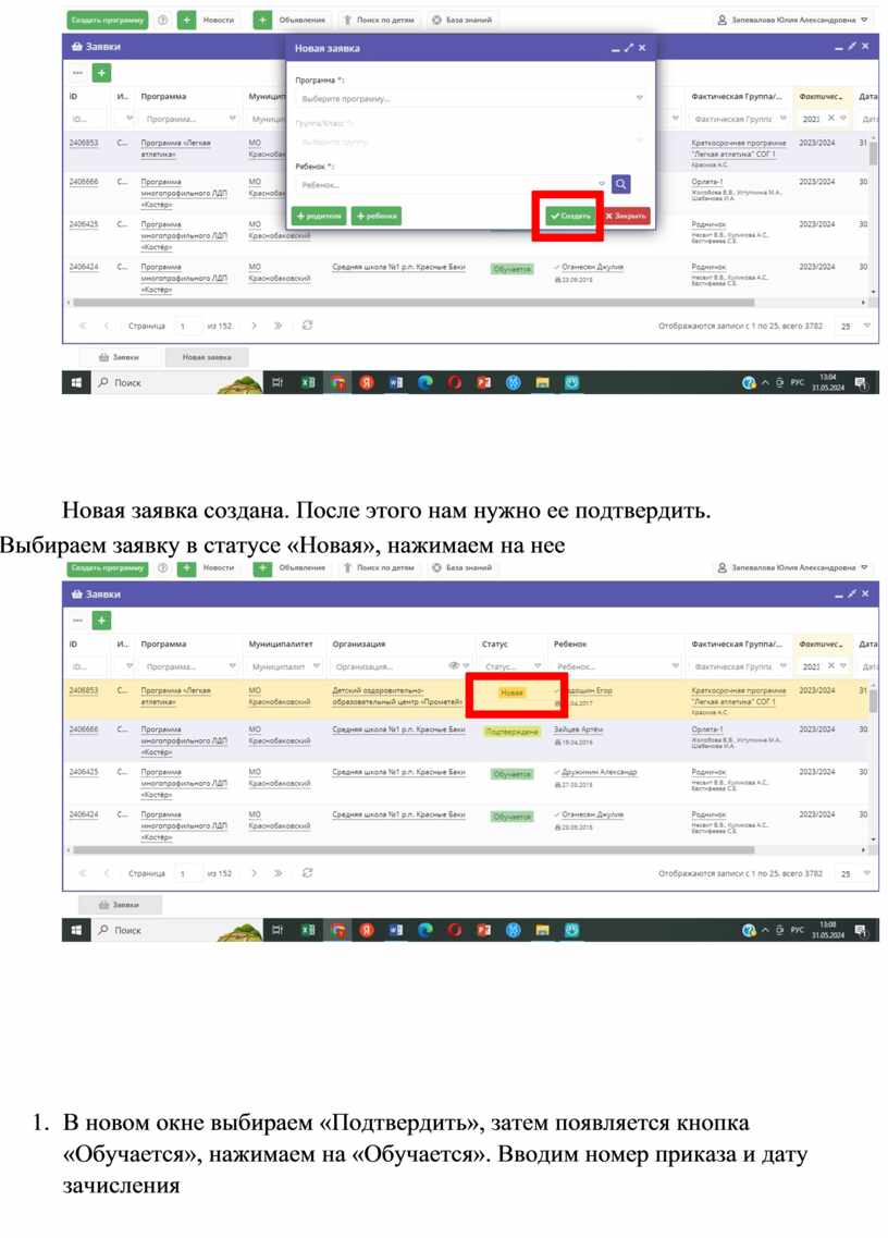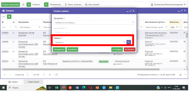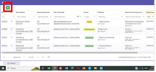 1. Заходим на сайт Админка. Навигатор через кабинет муниципального опорного центра. Переходим в раздел «Заявки: