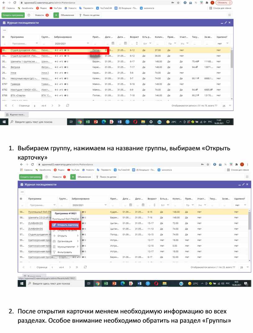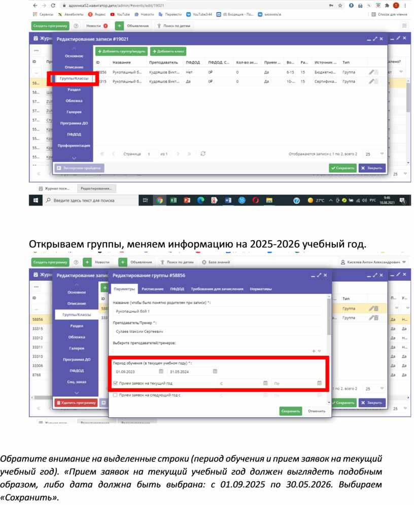 Открываем группы, меняем информацию на 2025-2026 учебный год.