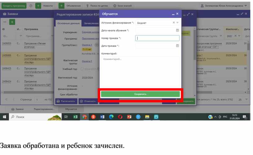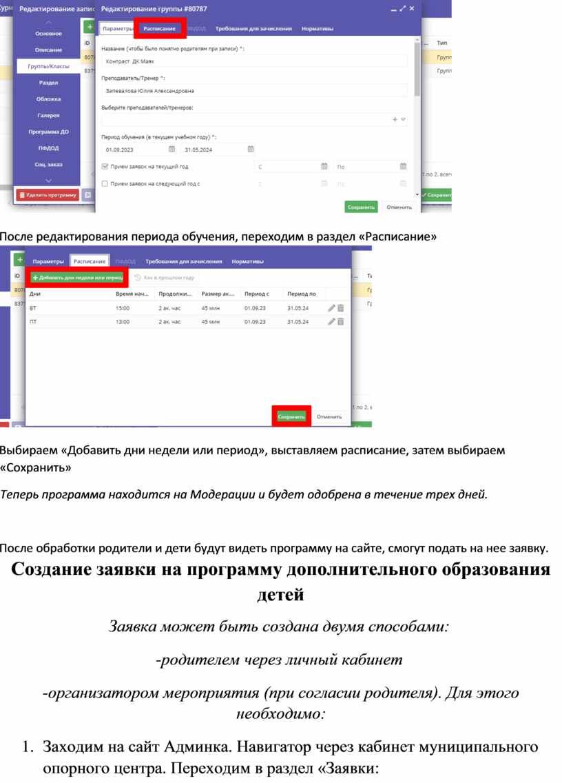 После обработки родители и дети будут видеть программу на сайте, смогут подать на нее заявку.