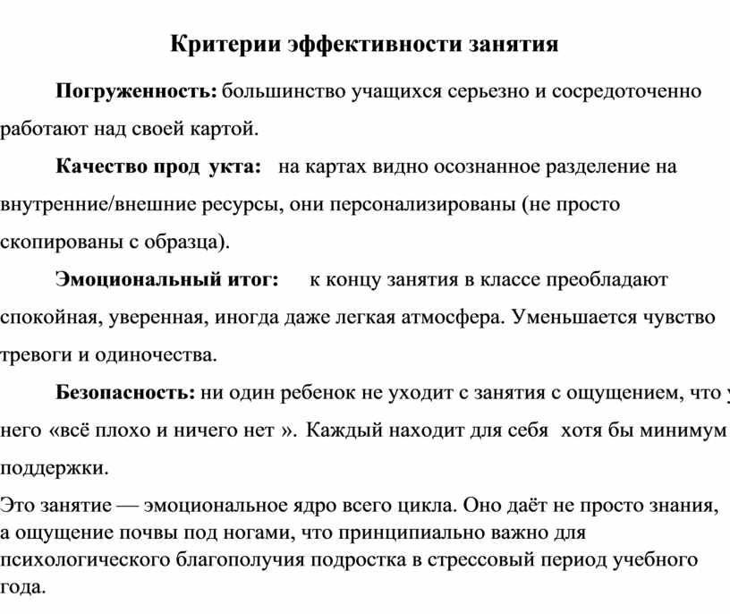Эмоциональный итог: к концу занятия в классе преобладают спокойная, уверенная, иногда даже легкая атмосфера. Уменьшается чувство тревоги и одиночества.