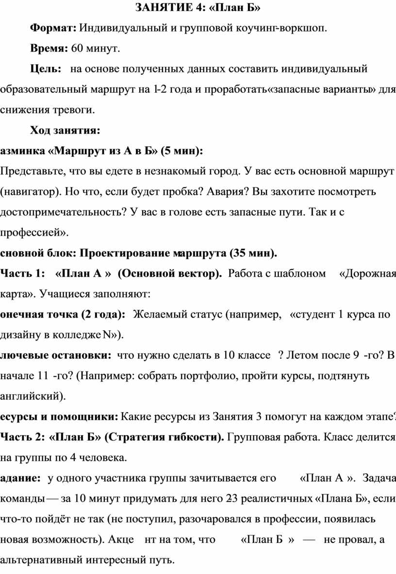 Часть 2: «План Б» (Стратегия гибкости). Групповая работа. Класс делится на группы по 4 человека.