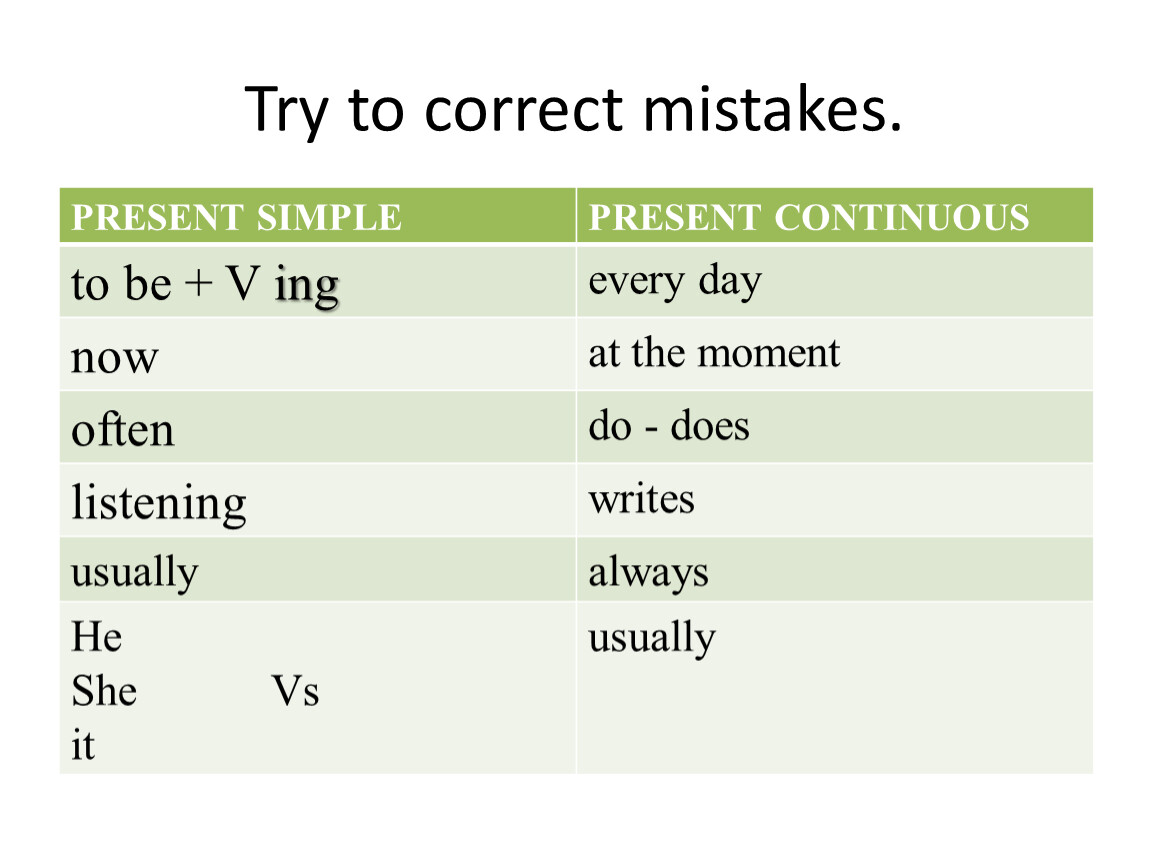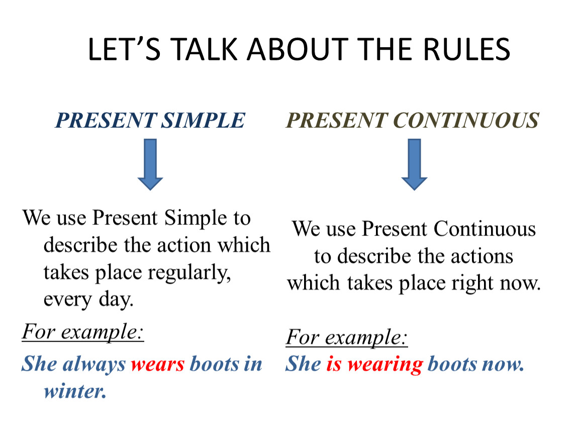 PRESENT SIMPLE  | PRESENT CONTINUOUS  |