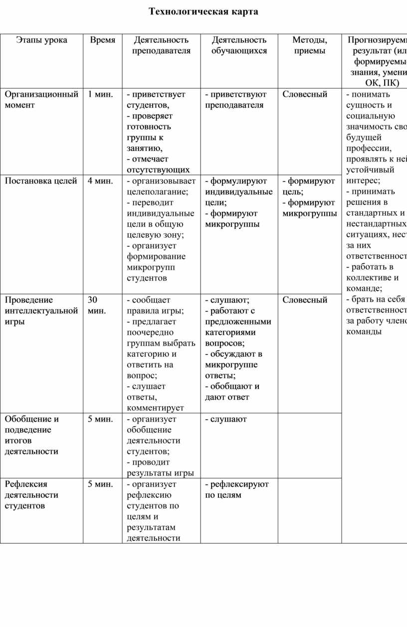 Прогнозируемый результат (или формируемые знания, умения, ОК, ПК) |