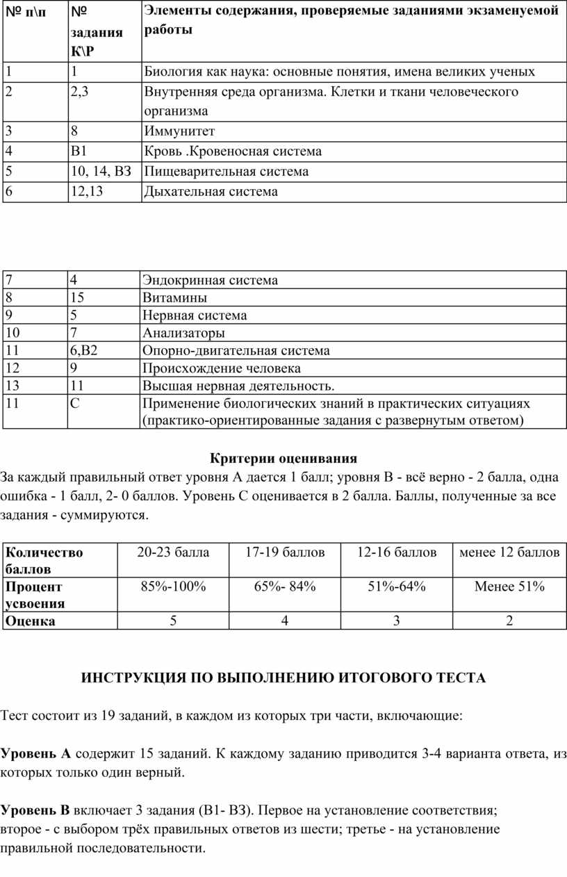 Разработанный тест по биологии-это система заданий разного уровня сложности и специфической формы, позволяющая качественно оценить структуру и измерить уровень знаний.