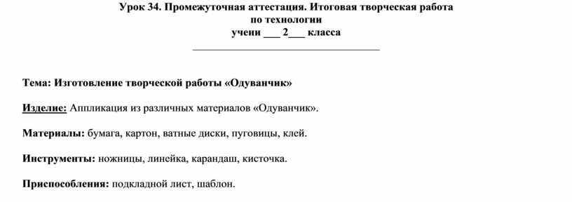 Урок 34. Промежуточная аттестация. Итоговая творческая работа