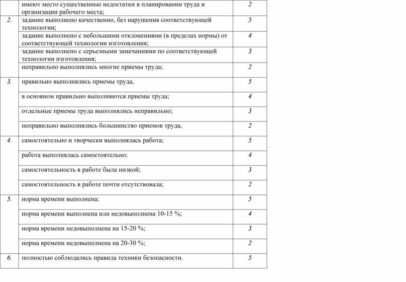 · правильно выполнялись приемы труда, самостоятельно и творчески выполнялась работа;