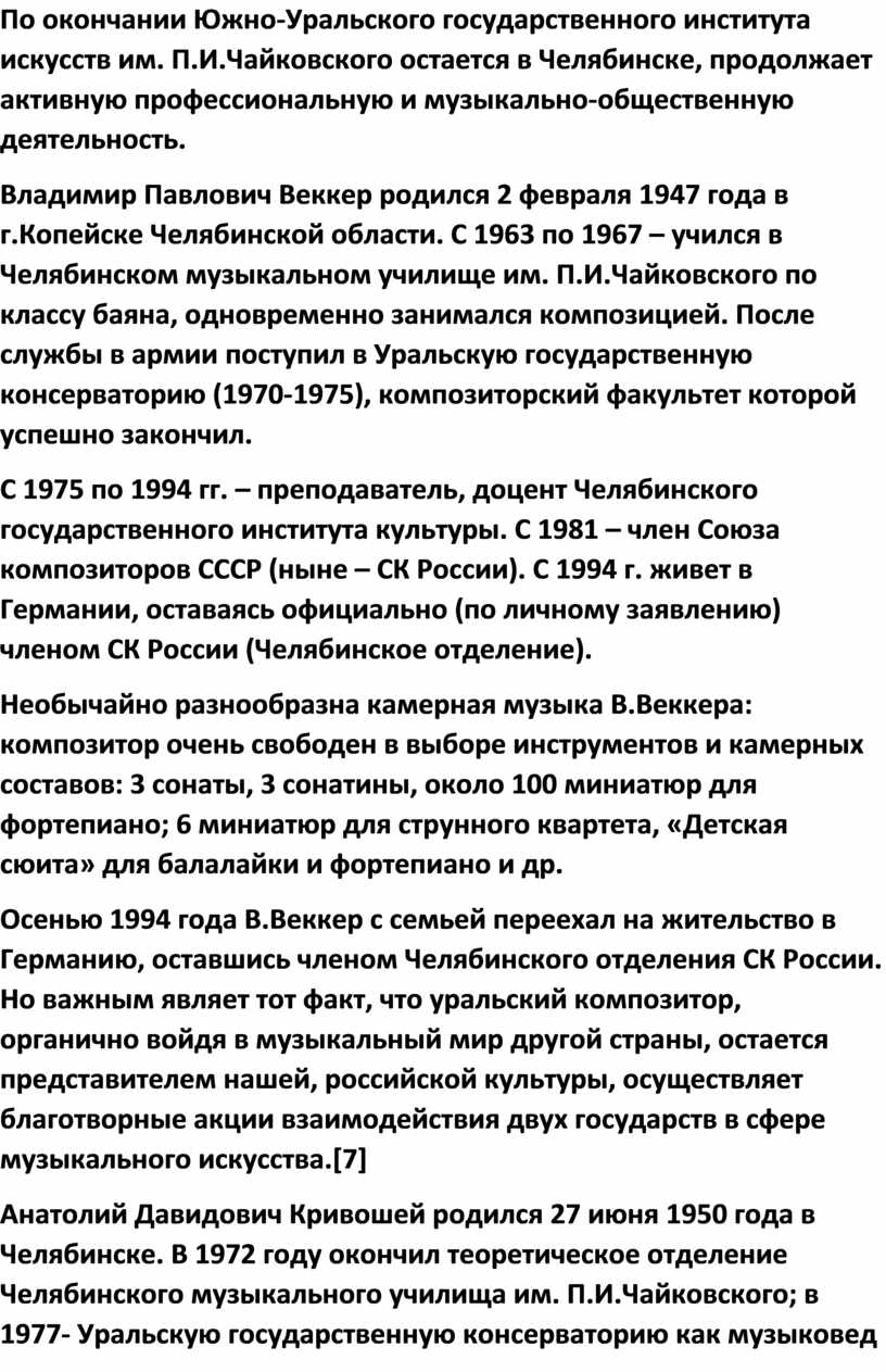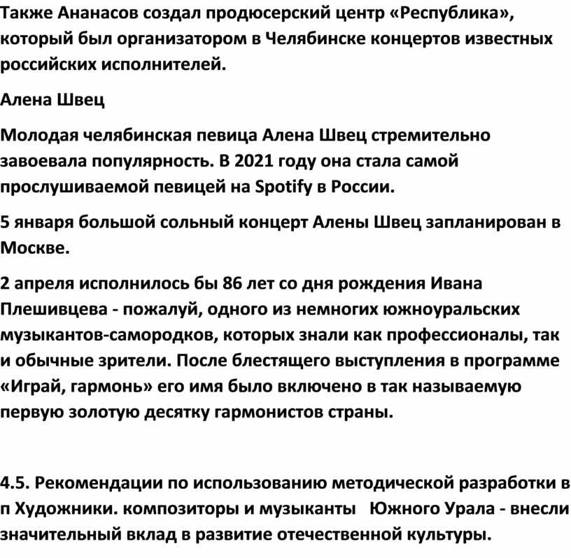4.5. Рекомендации по использованию методической разработки в п Художники. композиторы и музыканты Южного Урала - внесли значительный вклад в развитие отечественной культуры.