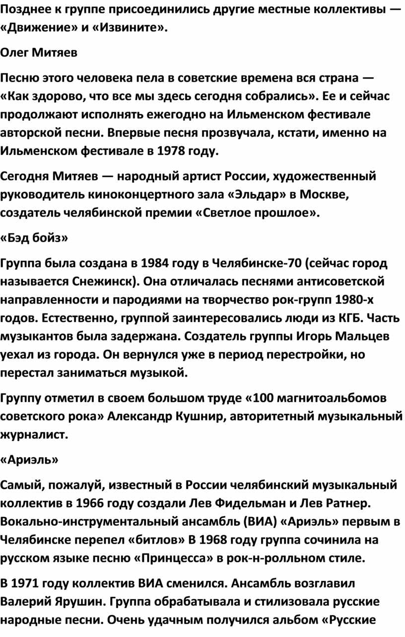 На Южном Урале не так много было ярких музыкальных групп и исполнителей. Тем не менее «Курс дела» напоминает про топ-10 музыкальных коллективов и исполнителей разных лет, которыми регион может по праву гордиться.