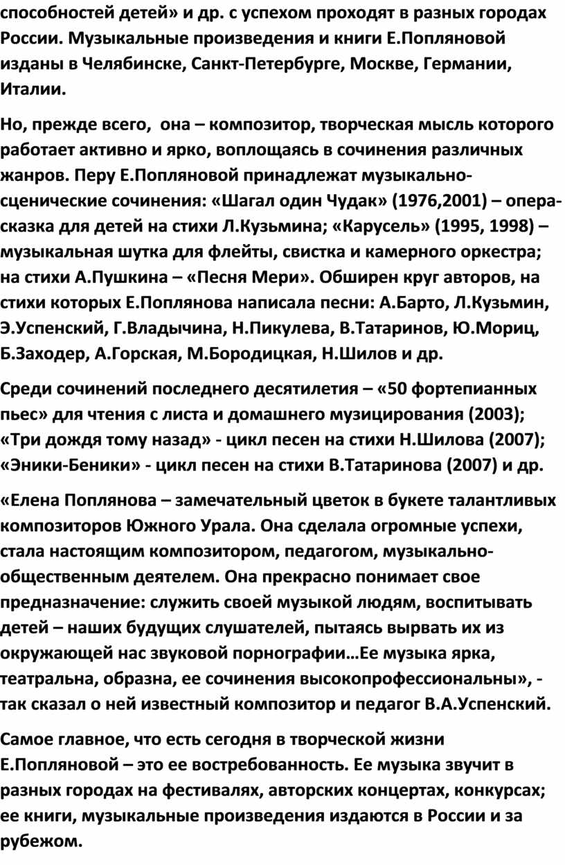 10. Синецкая Т. Елена Поплянова // Композиторы Южного Урала: - Челябинск: Дом печати, 2003. – С. 235 – 271;