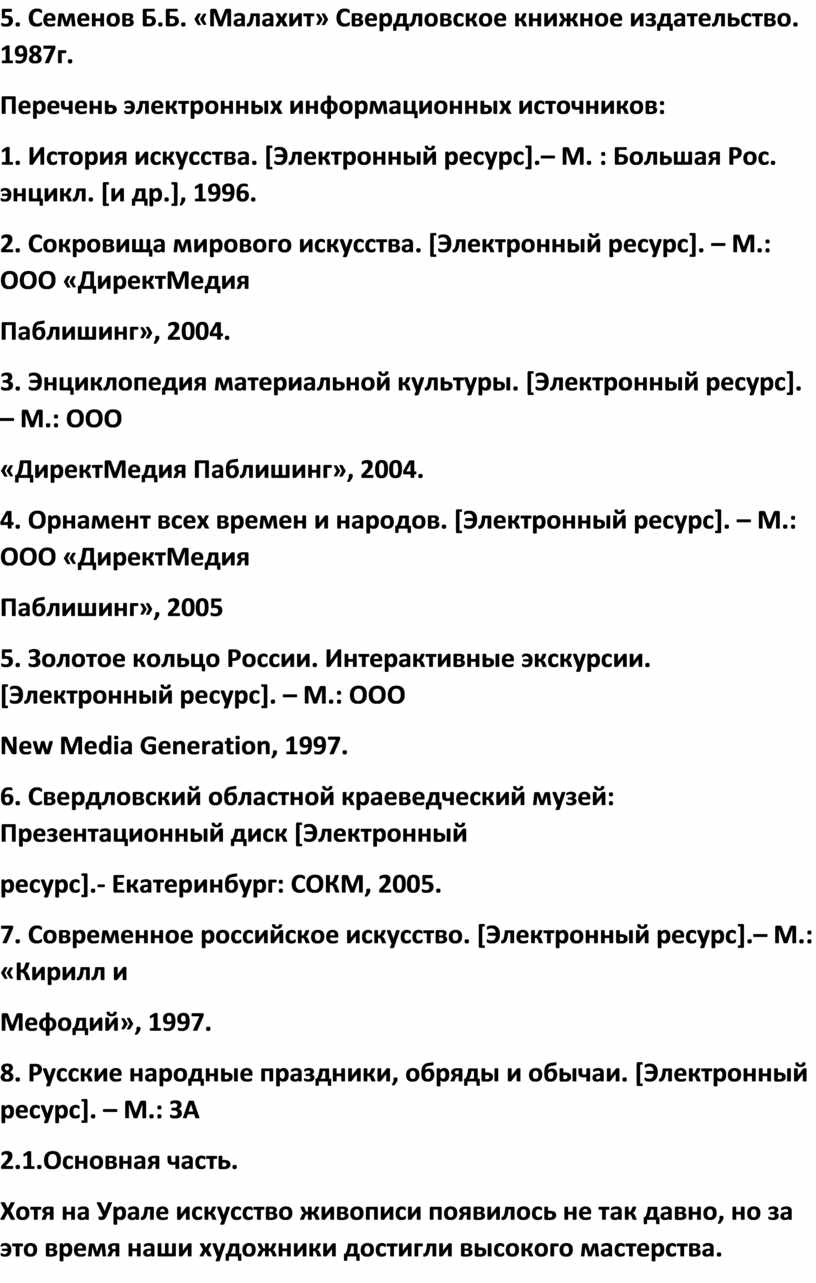 7. Современное российское искусство. [Электронный ресурс].– М.: «Кирилл и