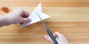 Ножницами срезаем уголки так, чтобы в руках остался аккуратный сложенный треугольник.