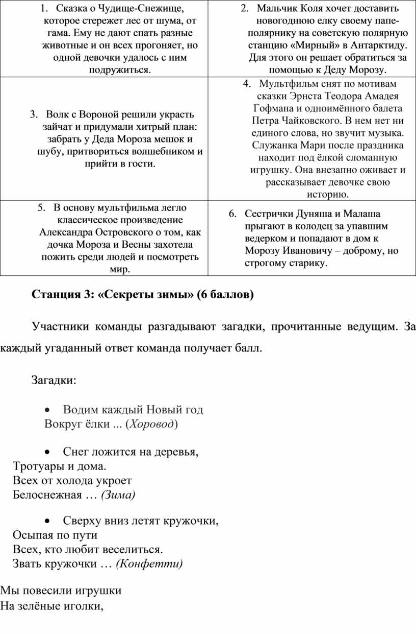 Станция 3: «Секреты зимы» (6 баллов)