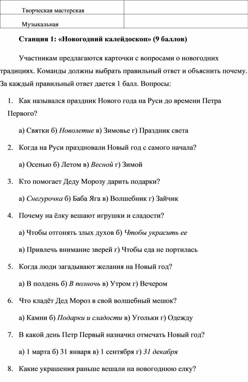 Станция 1: «Новогодний калейдоскоп» (9 баллов)
