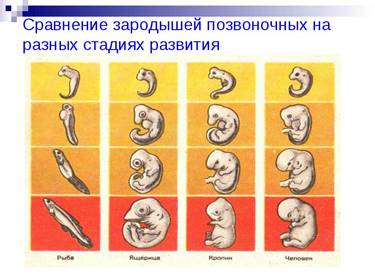 Тема: «Выявление и описание признаков сходства зародышей человека и других позвоночных как доказательство их эволюционного родства».