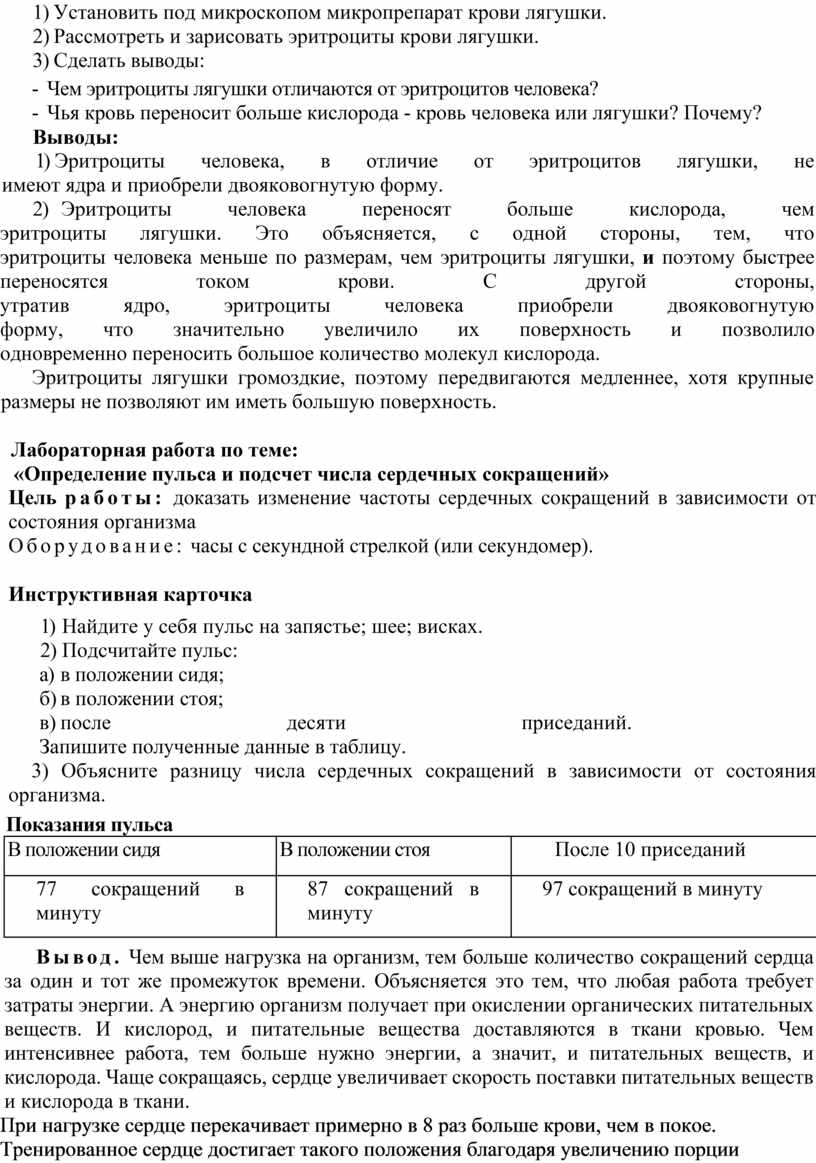 Ход работы: см. в учебнике “Биология (человек)” 8 класс, Д.В. Колесов, Р.Д. Маш, И.Н. Беляева стр. 127-129.