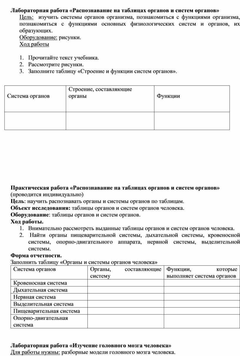 Лабораторная работа «Распознавание на таблицах органов и систем органов»